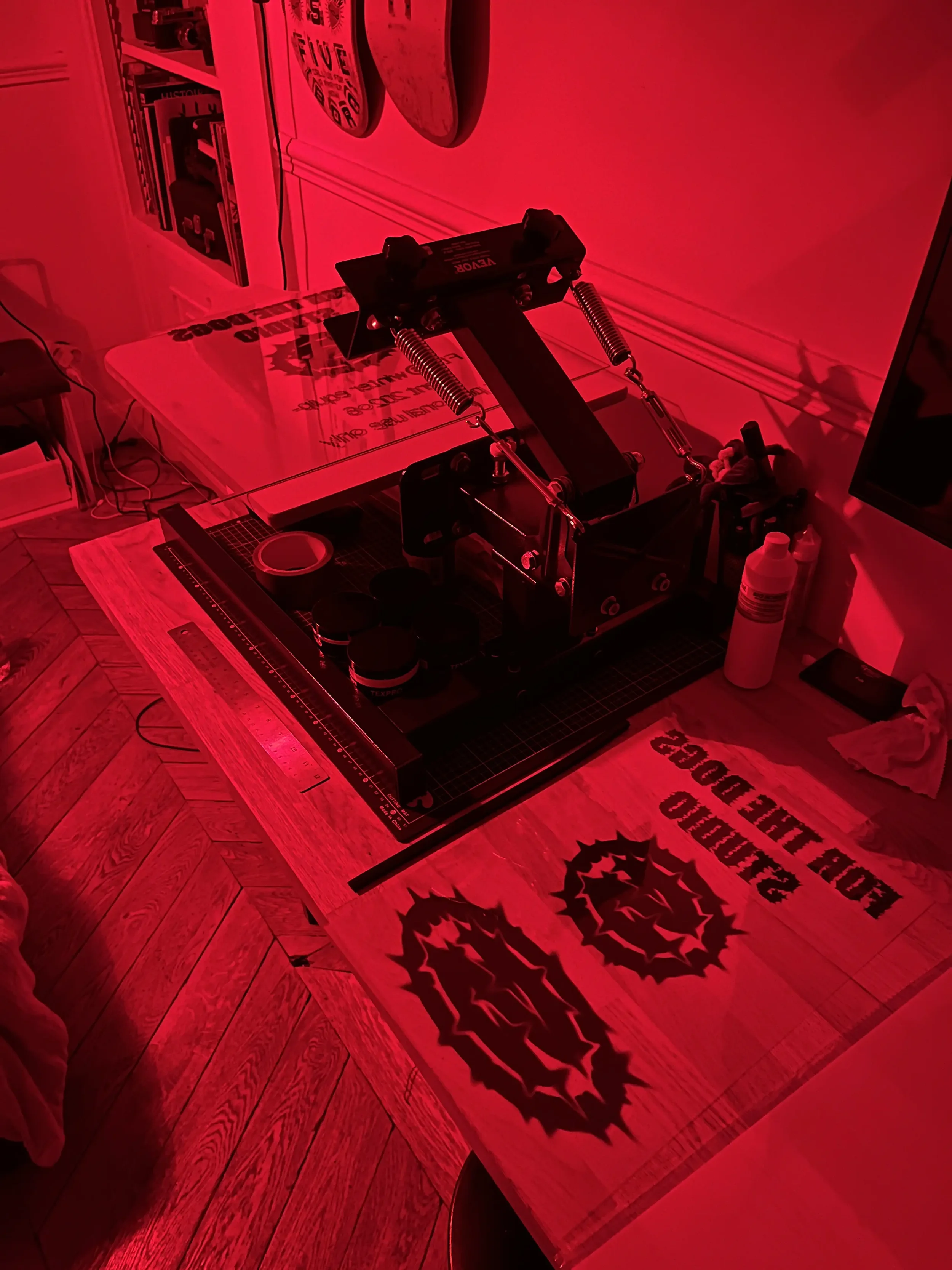 Une fois tous les design mis en place je passe à la sérigraphie manuelle, où chaque impression est faite avec précision et passion.